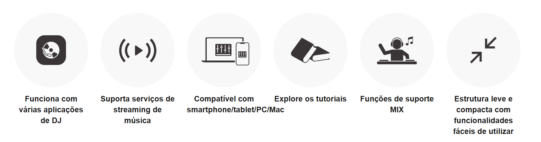 - Compatível com múltiplas aplicações de DJ e serviços de streaming de música