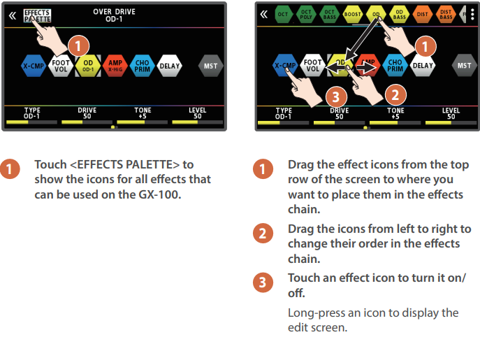 BOSS GX-100 GUITAR EFFECTS Visor a Cores Sensível ao Toque B-STOCK