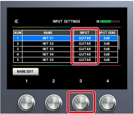 SELECT knob, OUTPUT LEVEL knob, EXP1 pedal