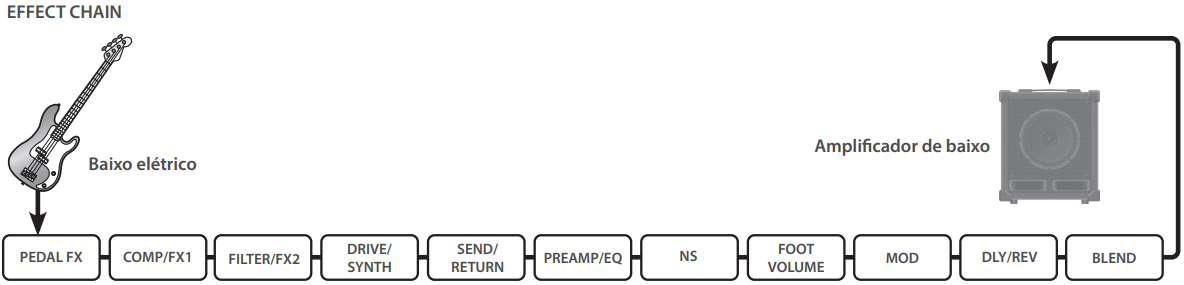 - Secção de pré-amplificador dedicada e seis categorias de efeitos simultâneos com vários tipos de efeito à escolha