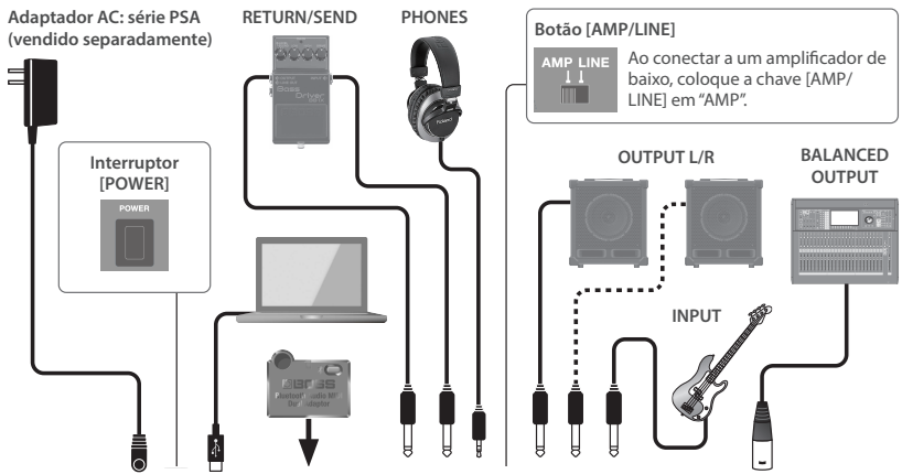 - Processador de baixo tudo-em-um com amplificadores e efeitos premium da BOSS