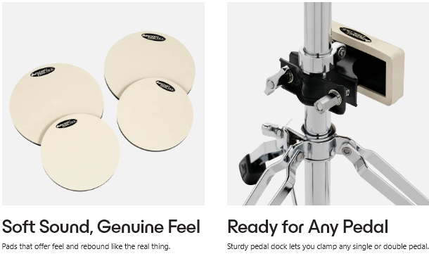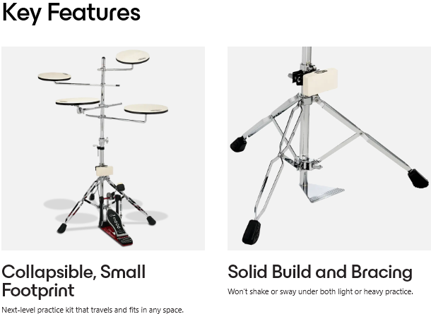 Never again will you have to be without the ability to practice. The 5-piece portable Go Anywhere Complete Practice Set allows you to sharpen your independence, groove, and coordination without bothering others. Notable features include heavy duty construction, natural feel and rebound, and easy setup. DW: The Drummer's Choice. *