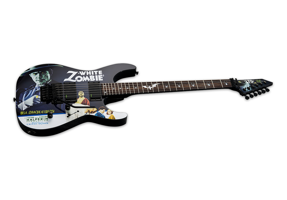 A LTD KH-WZ White Zombie é muito mais do que uma guitarra — é uma homenagem viva ao universo do horror clássico e ao som pesado que define o lendário Kirk Hammett dos Metallica. Esta edição especial replica a guitarra pessoal de Kirk, com o impactante grafismo inspirado no filme White Zombie (1932) com Bela Lugosi. Cada detalhe desta guitarra grita atitude, presença e performance ao mais alto nível.