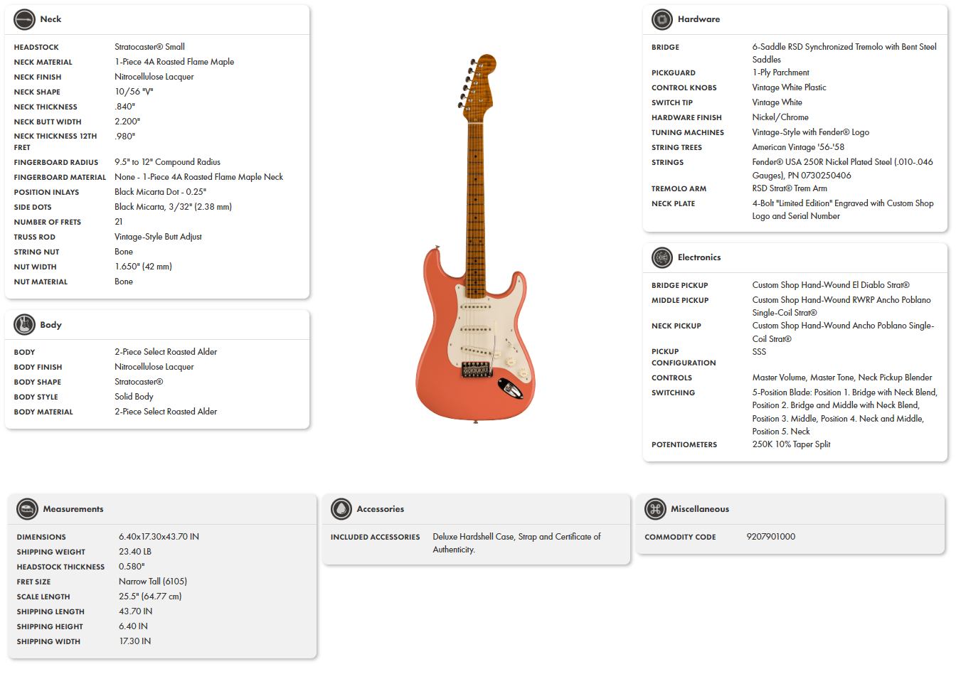 - Pickups: Bridge Handwound Poblano Strat; Neck pickup: Handwound Strat El Diablo; Middle pickup: Handwound Poblano Strat