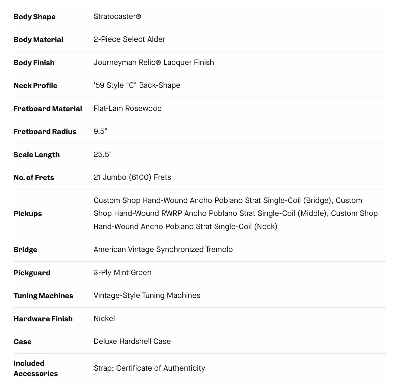 - Case incluída: Fender Custom Shop Case