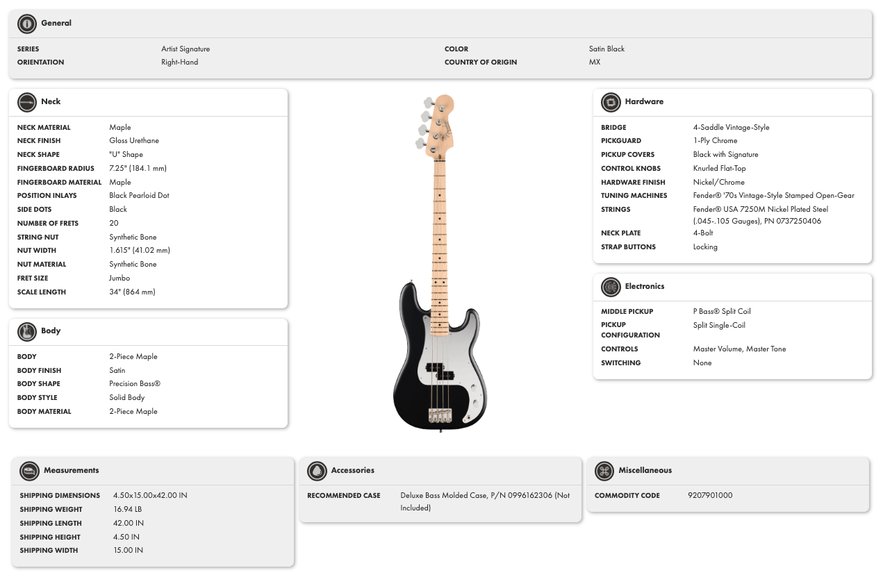 - Acabamento Satin Black com braço totalmente em maple