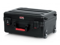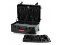 O TSA Series ATA Molded Utility Case da Gator Cases é uma caixa de transporte de utilidade com duas paletes de ferramentas padrão removíveis. Seu interior mede 18 x 13 x 7 ", e seu exterior é feito de polietileno quase indestrutível. A parte inferior da caixa é preenchida com quatro polegadas de espuma em camadas. Além disso, vem com uma alça retrátil retrátil e rodas embutidas.