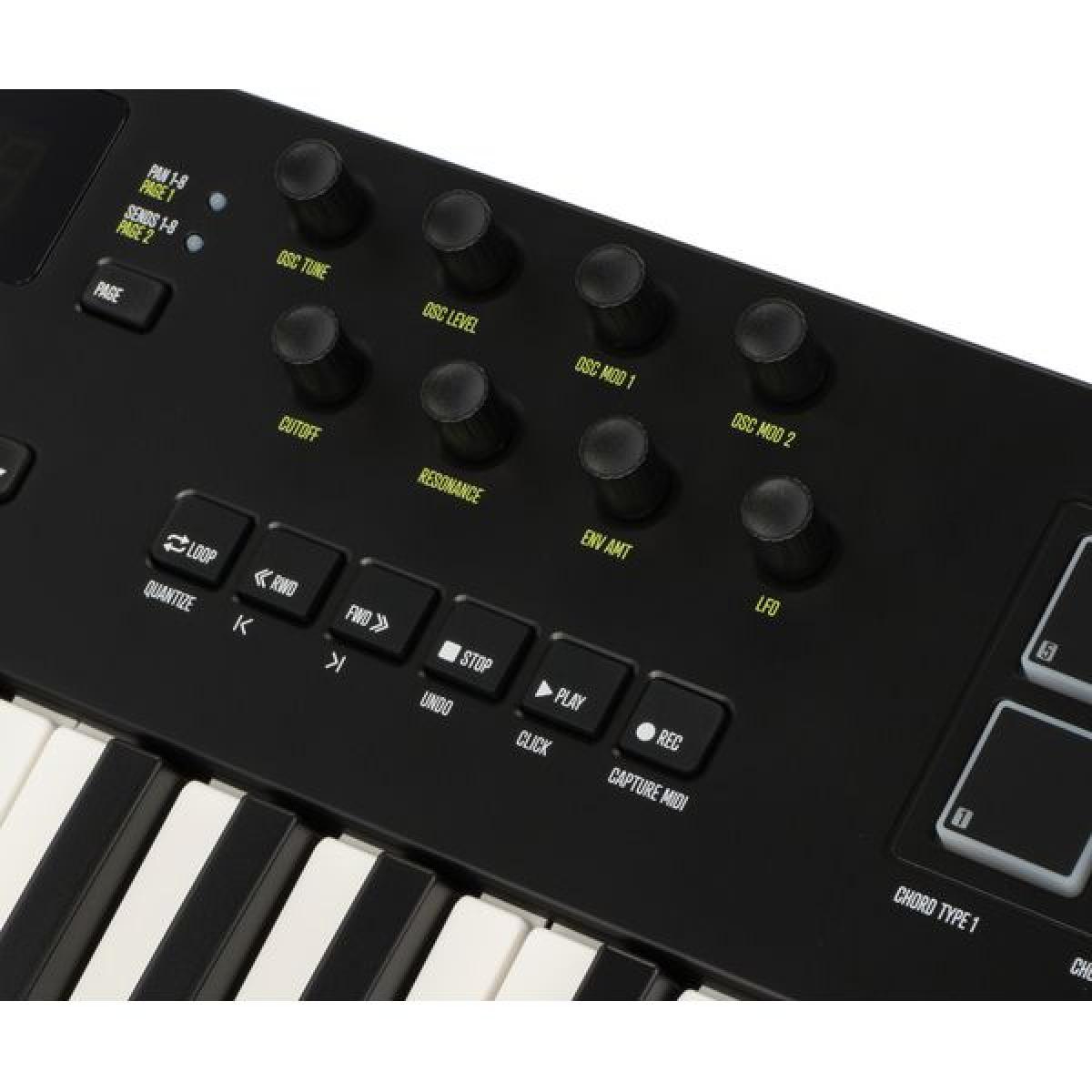 O LX25 MK3 vem acompanhado de um pacote de software profissional, incluindo Bitwig Studio 8-Track, o poderoso sintetizador Miniraze da MOK, e o prestigiado Komplete Select 15 da Native Instruments, que te oferece uma vasta biblioteca de sons, instrumentos e efeitos prontos a usar.