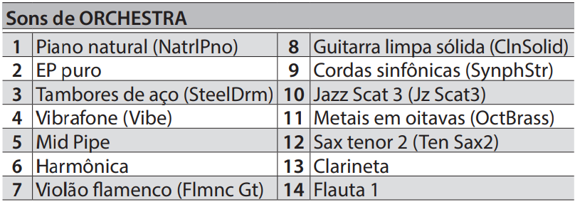 - 162 Sons Orquestrais, 32 Sons de Orgão, 3 Sons de Bateria