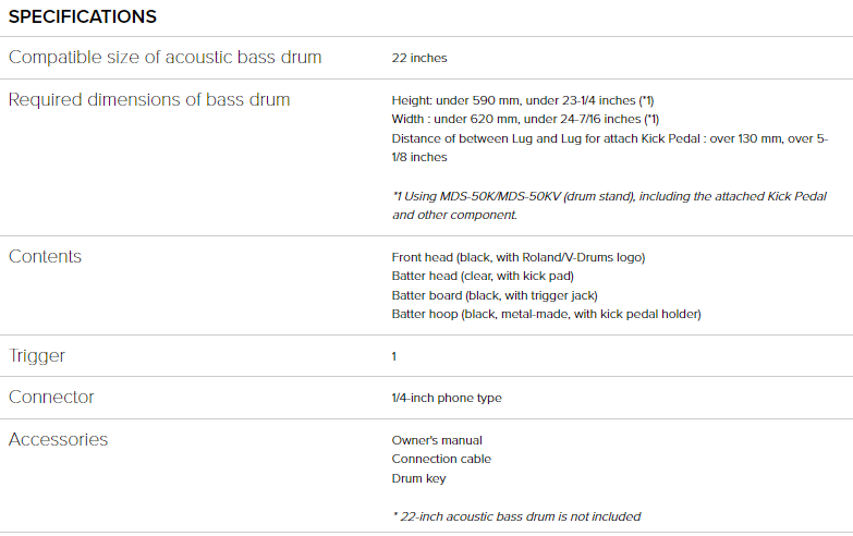 Roland KD-A22 Kick Drum Converter é um kit de conversão que permite transformar um bombo acústico tradicional de 22 polegadas num bombo eletrónico.
