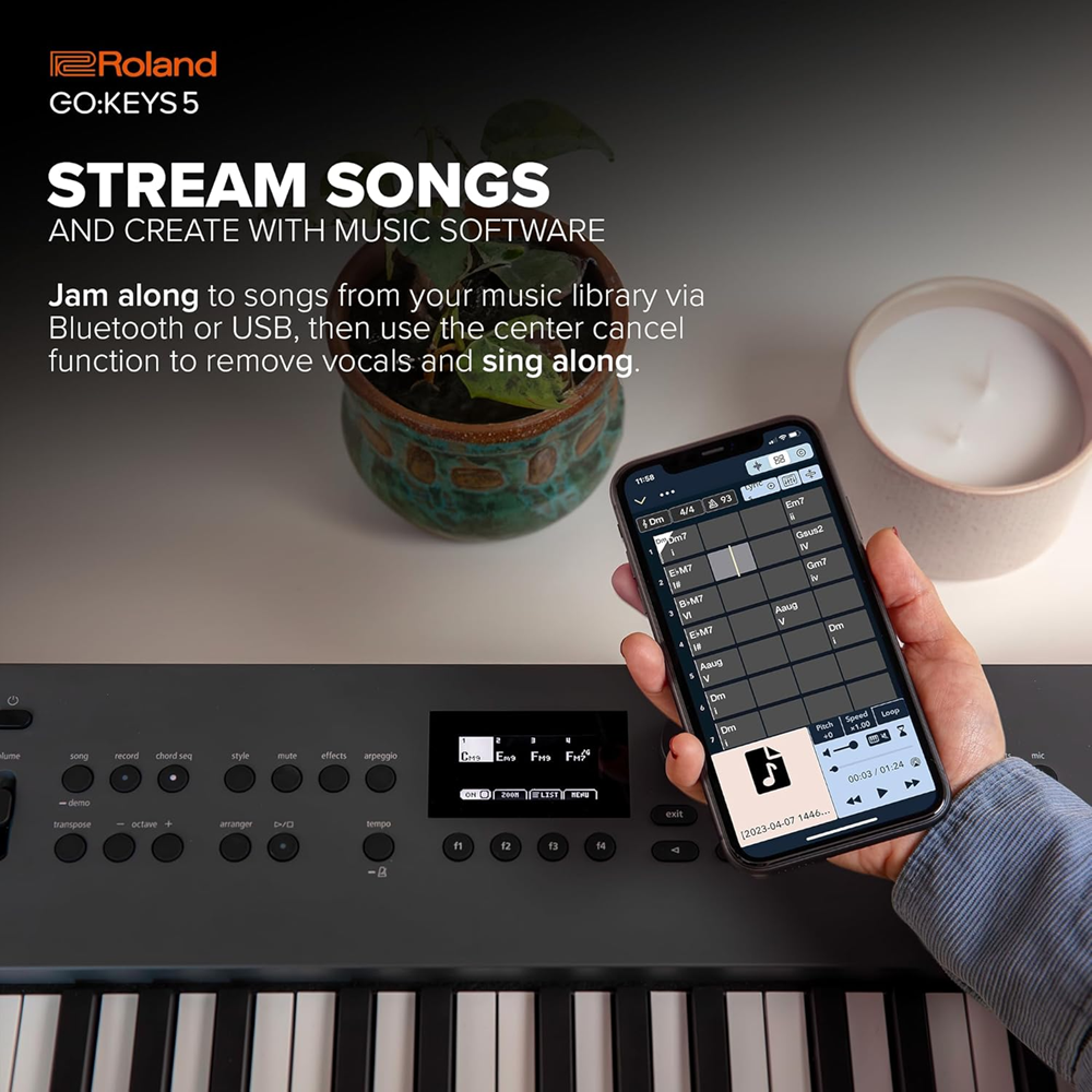 | Conectividade Bluetooth | Integração Moderna: Toque junto com as suas músicas favoritas e use o GO:KEYS 5 como um sistema de som premium. |