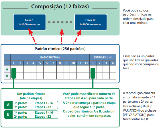 - Sequenciador 16-step / 16-sub-steps / 16 bancos de memoria (12 x 16 Patterns / 4 x 16 Intro / Fill-in)