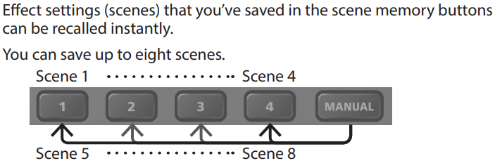 - 8 x Memorias SCENE para guardar as tuas configurações em Presets