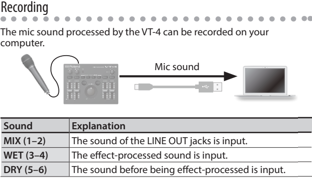VT-4 como Interface de Áudio USB (Streaming/Gravação)