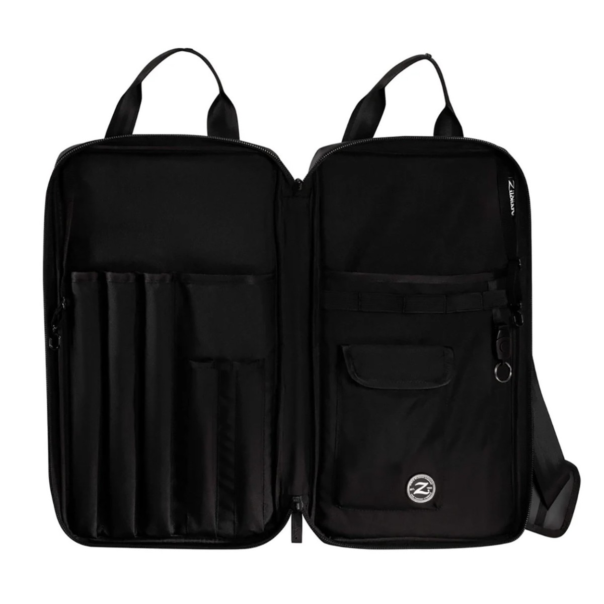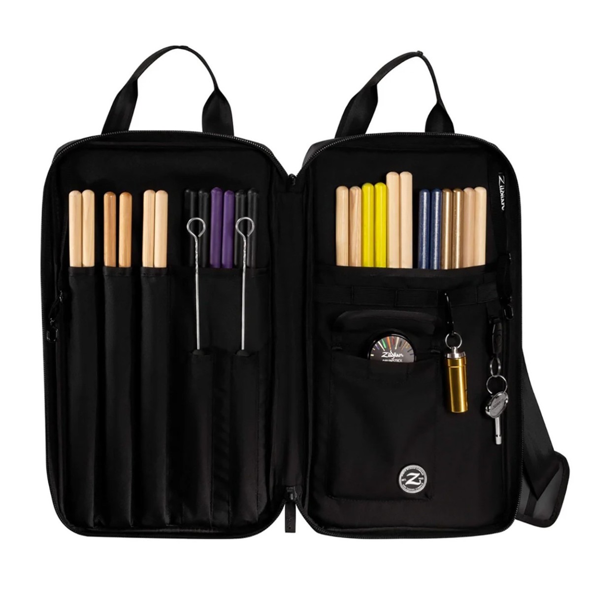 Esta bolsa para baquetas Zildjian Gigging Stick Bag tem bolsos dedicados para manter os pares combinados juntos, enquanto as escovas têm os seus próprios bolsos para fácil acesso. Alças reforçadas e ajustáveis para o tom de chão com ganchos personalizados mantêm a bolsa segura enquanto toca. Uma alça de ombro acolchoada personalizada está incluída para maior conforto durante o transporte. Feita de um tecido de nylon revestido durável e ecológico, esta bolsa é resistente às intempéries e pronta para a estrada. Disponível em três cores – preto, azul-escuro e verde-salva – há uma opção para se adequar ao estilo de qualquer baterista.
